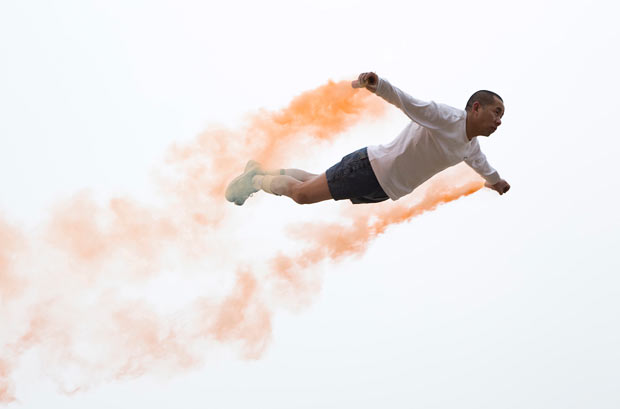 Chinese artist Li Wei creates images of himself and his friends being thrown off buildings, dangling from bridges and hanging off cars, all in the name of art. Li's photos can take up to six months to set up and involve huge crews organising props such as smoke, mirrors, wires and cranes. After the photographs are taken the father of one removes traces of the wires with a computer. Li, from Beijing, said: "One of the most difficult and expensive shots was where myself and 12 people were flying behind a car and we had to use a lot of cranes to keep us all suspended"